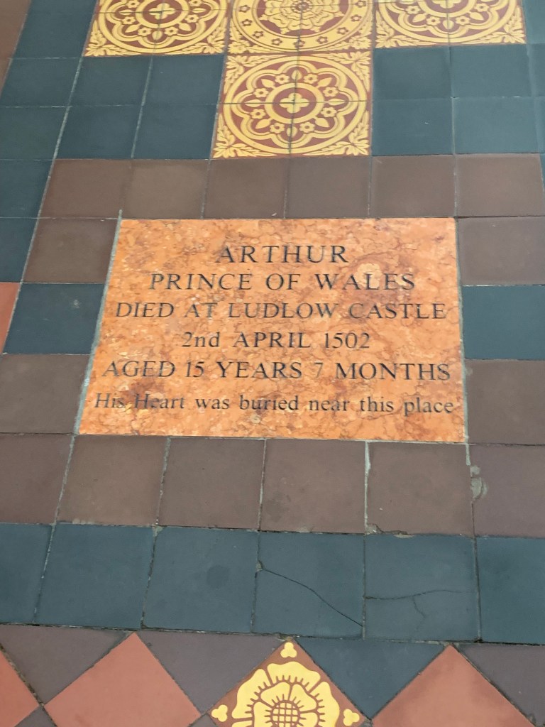 Within a year, however, Prince Arthur was dead (let’s not blame the food or climate). The couple were said to have been afflicted by “a malign vapour which proceeded from the air”, often interpreted as the mystical Sweating Sickness. While Catherine recovered, Arthur was to die on 2nd April 1502, at the age of just 15. His body was buried in Worcester Cathedral, though his heart was interred in Ludlow in the nearby church of St Laurence where a plaque marks the supposed spot.